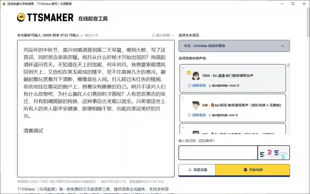 • 所有配音免费可商用,每周限制 30000 个字符(部分声音可支持无限制不限量使用)