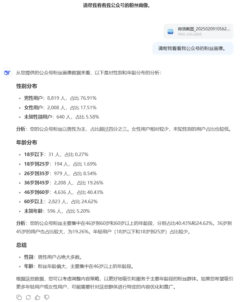 - 精准推送内容:通过Deepseek分析公众号的受众群体,了解他们的需求,精准推送符合受众兴趣的内容。