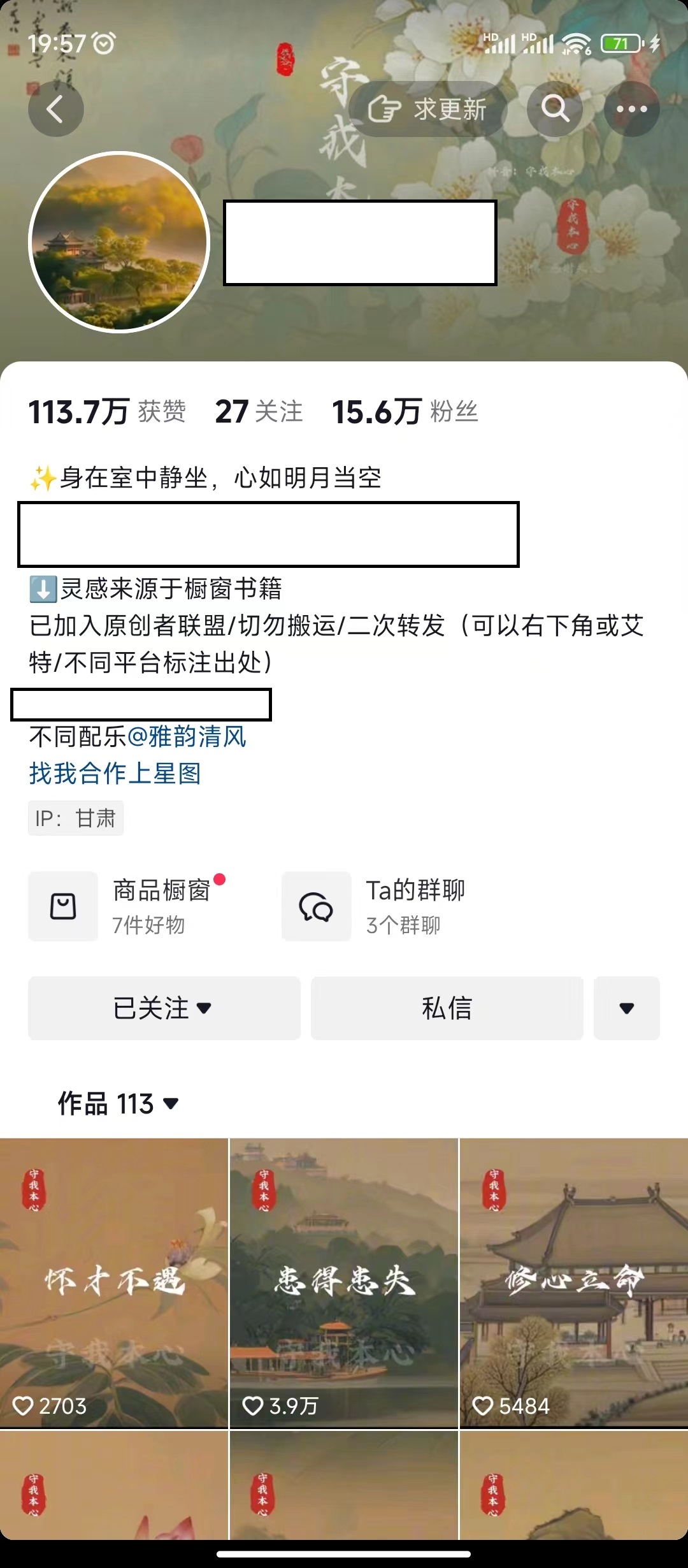利用AI生成几十字的国学文章,再配上山水画,添加滤镜,关键帧,只需十分钟,一条爆款作品就完成。