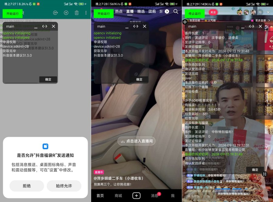 自动抢福袋,市面上的抢福袋软件每次都要隔好长时间才能等到开奖,极其浪费时间,因为我利用了一些算法做了这款可实现每隔30秒抢一次福袋的脚本!让你在短时间内参与福袋的机会更多 ,全网首发,有问题可反馈无需任何设置使用简单,打开到直播间打开软件直接运行即可