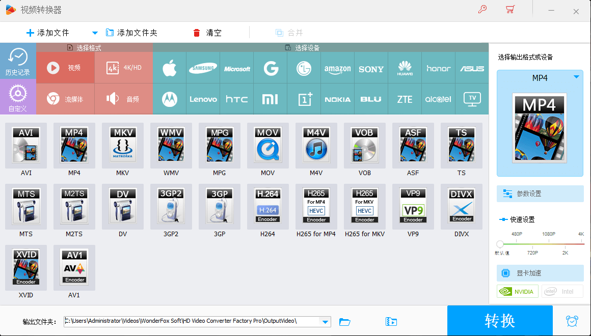 - 支持300多种视频格式转换,在保留视频质量的同时,压缩率可达80%,转换速度可达50X速率