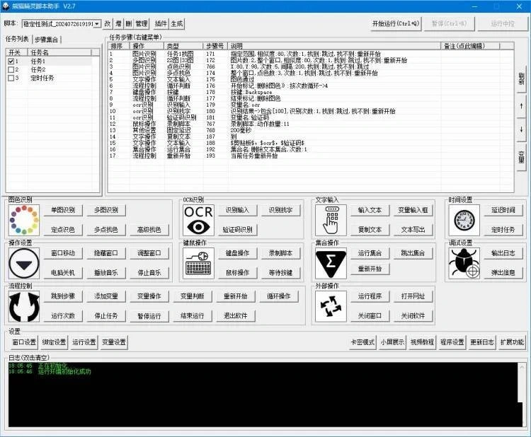 支持后台操作,多窗口异步操作,键鼠录制,生成运行脚本运行,速度调节,逻辑判断